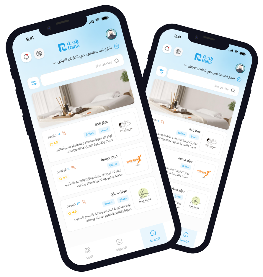 Our centers offer you the best massage and cupping techniques to achieve complete comfort and wellness. We bring all the massage and cupping centers in the Kingdom closer to you in one application at your fingertips. The easiest way to book appointments with the click of a button Easy access to massage and cupping centers that offer home services.